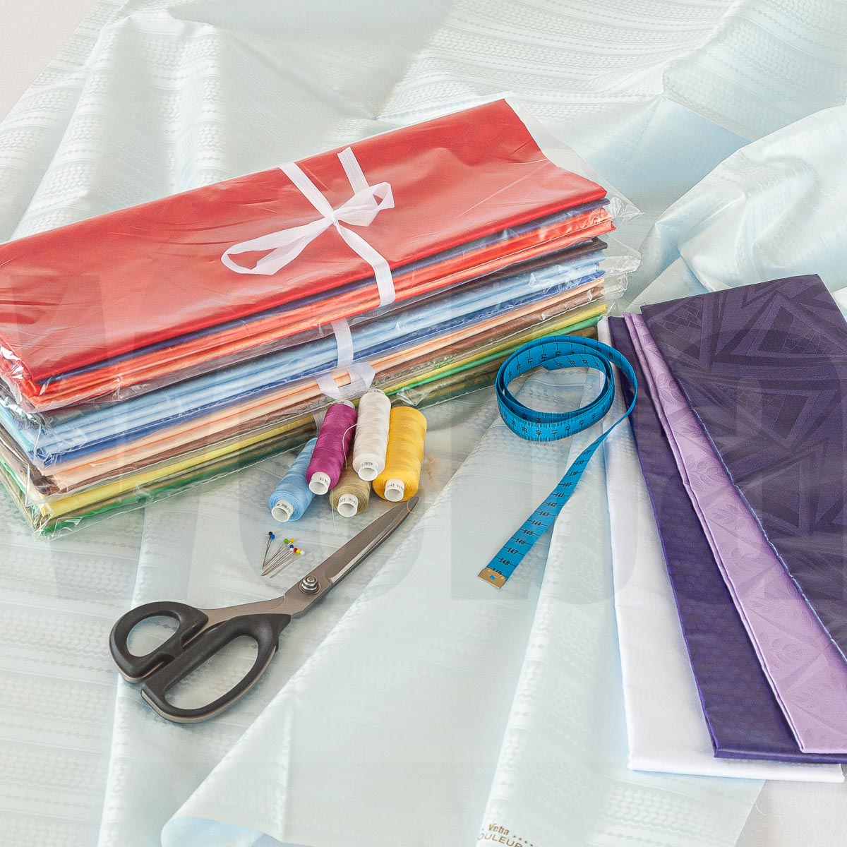 The offer includes yardage, sets of fabric cuts for creative creations, and home textiles.